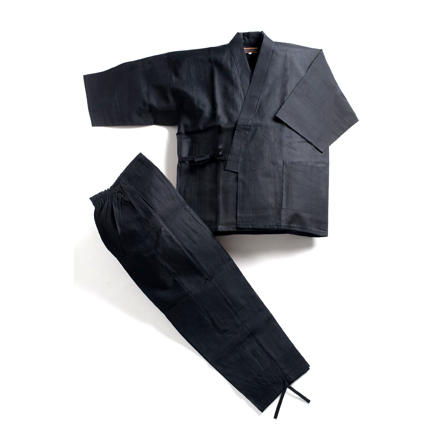 作務衣【日本製】シジラ織(綿75%麻25%)黒色