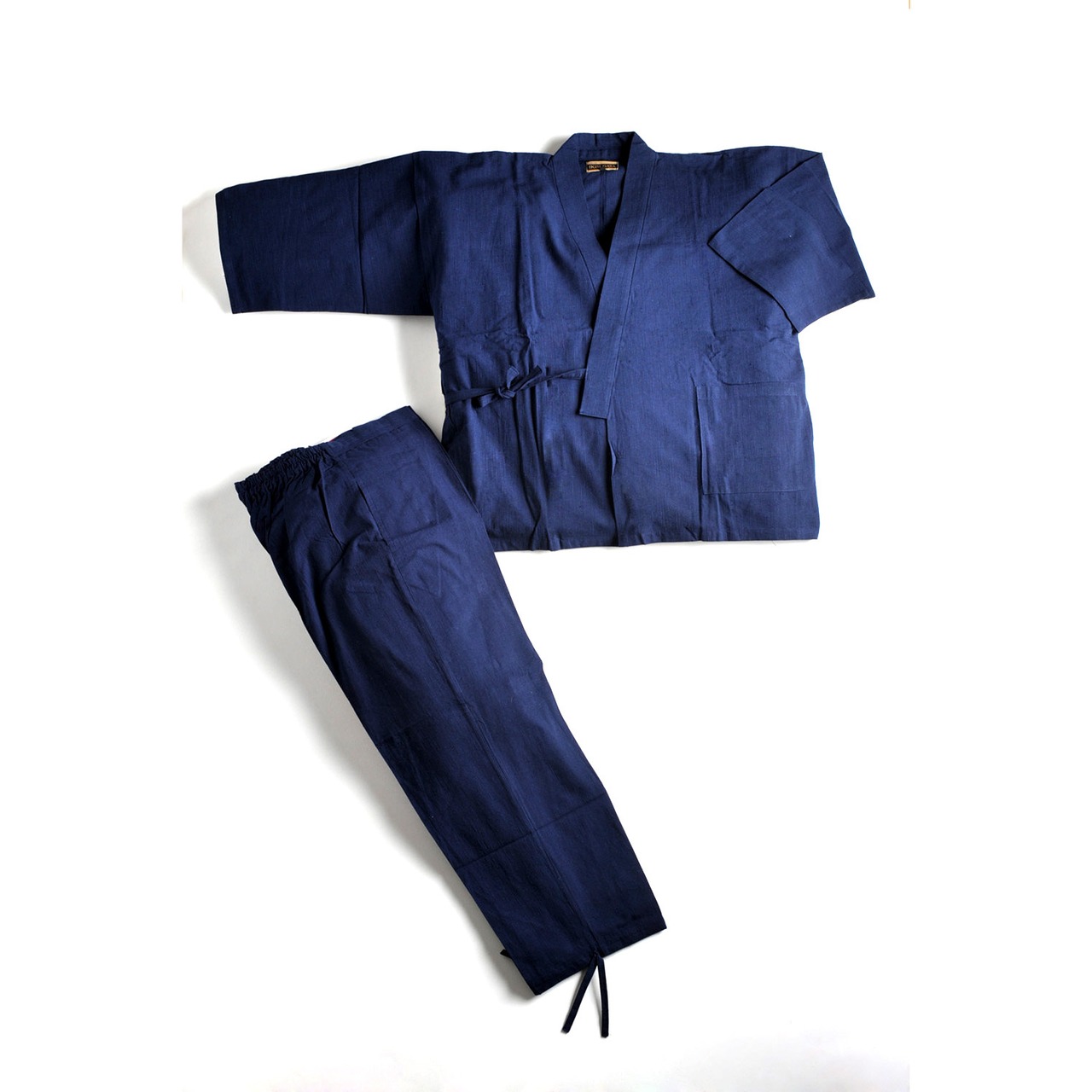 そのスラブ糸をタテ糸に使った生地で作り上げたざっくりした肌触りが心地よい作務衣です。